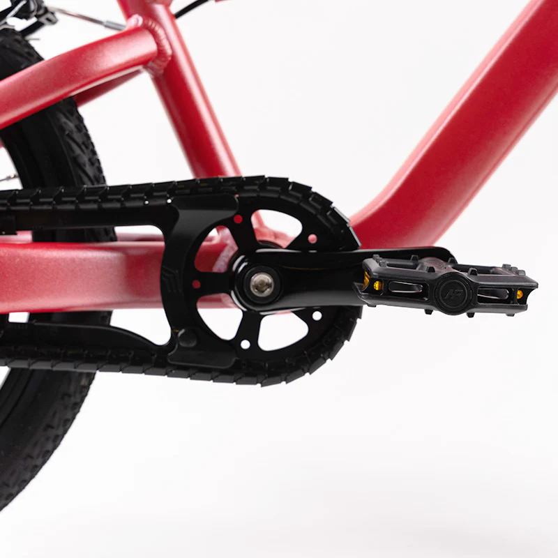 Ce pédalier vélo enfant est spécialement conçu pour votre cycliste en herbe. Le nombre de dents est étudié pour s'associer avec la roue libre et obtenir un développement adapté. Tout comme la longueur de manivelles du pédalier participant à une extension de jambes parfaite.